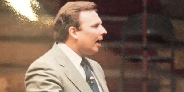 Ted preaching in Mexico in a sporting arena in the 1980's.